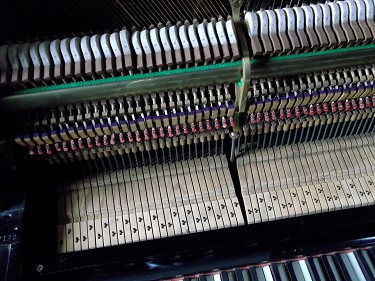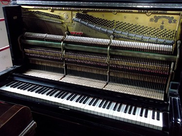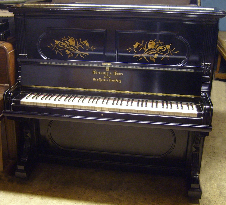 Steinway and sons, rebuilt upright piano with floral inlay.